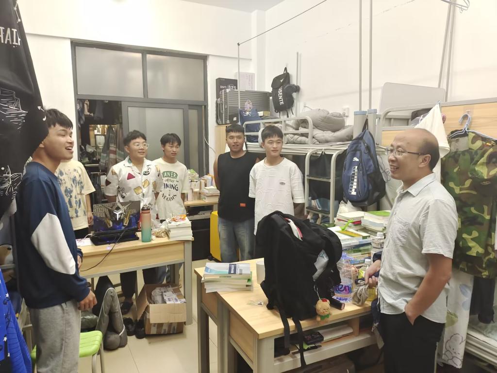2023年8月27日,为了解学生的返校和生活情况,学院党委书记王家顺、辅导员郭贵香、杨乙未、张炜亮和学院学生会学习部、生活部同学走访2020级、2021级、2022级的男女生寝室。