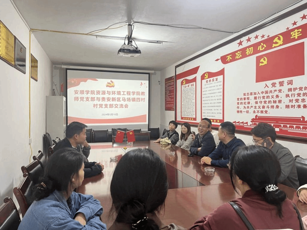 为提升党建工作水平,互相分享好的经验做法,促进党建工作与行业服务的深度融合,2024年5月16日下午,安顺学院资环学院教师党支部与贵安新区马场镇四村村党支部,开展支部经验交流学习活动。