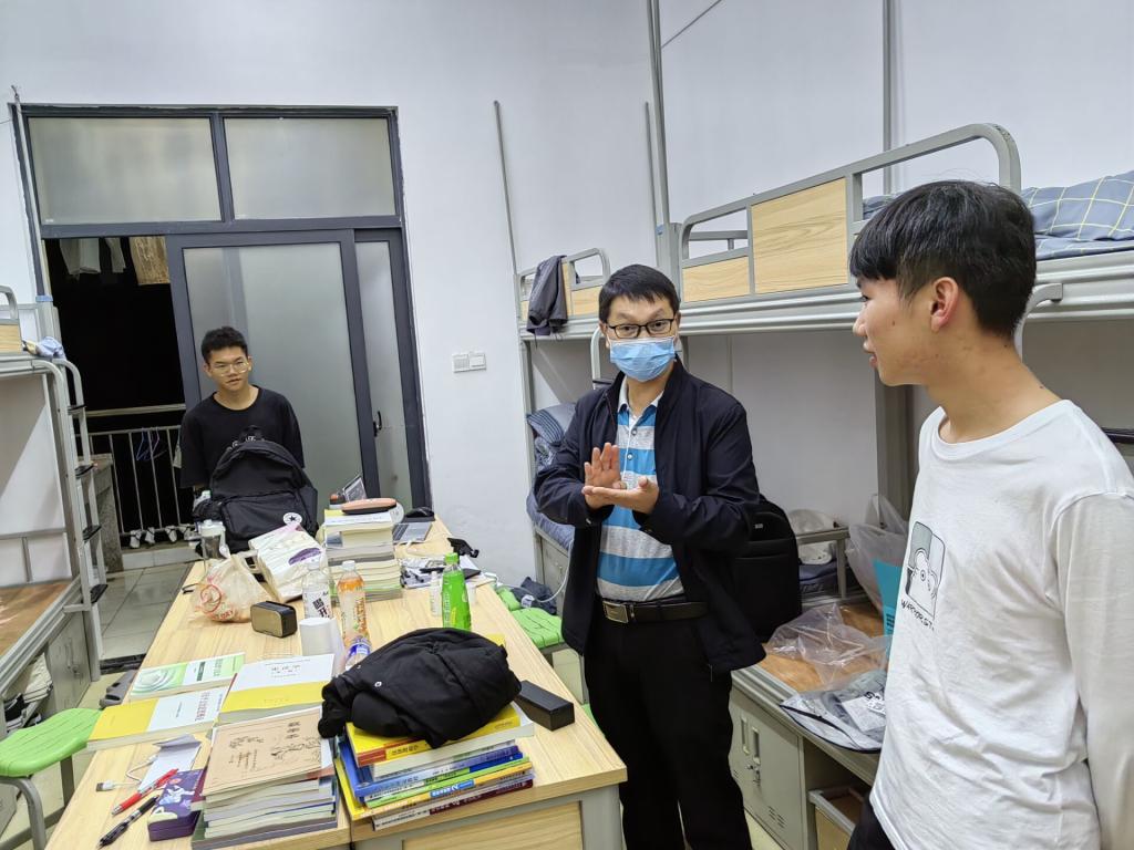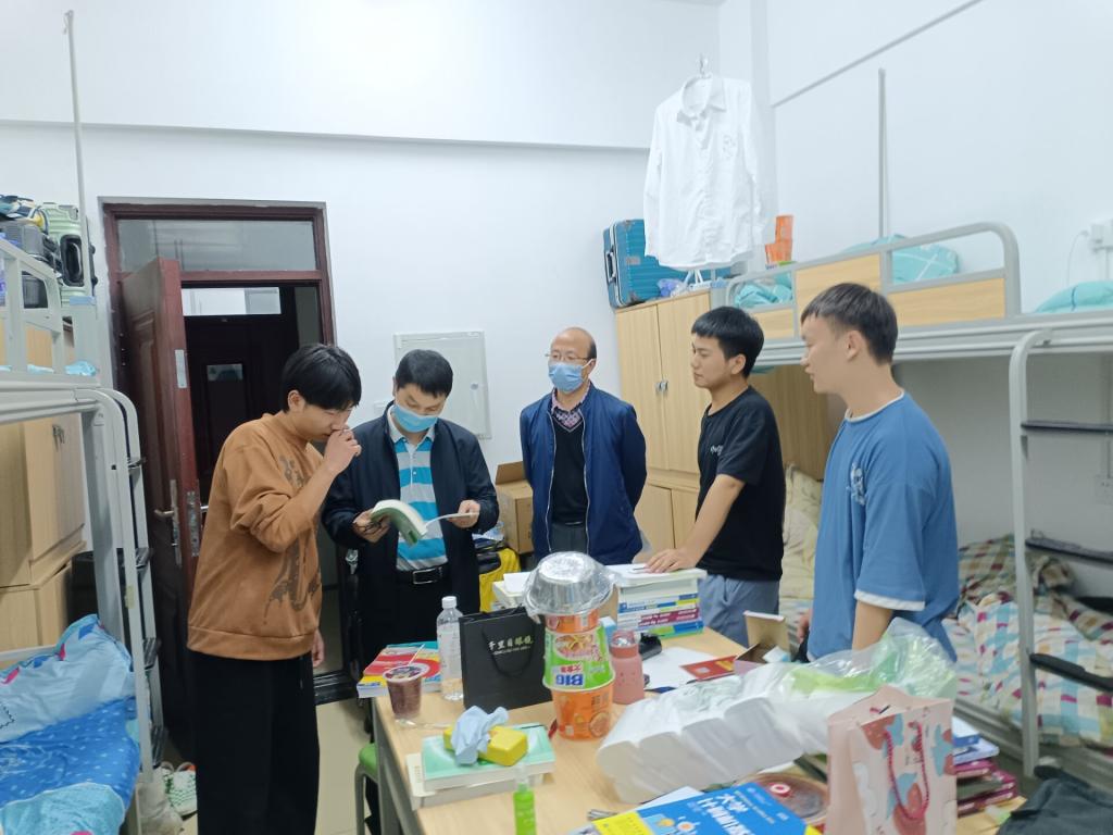 近期,省内疫情防控形势严峻,为关爱学生生命安全及心理健康,2022年9月16日晚上,安顺学院副校长张来走访了2022级测绘工程专业新生宿舍,深入了解疫情期间同学们的学习、心理和生活状况,同时开展疫情防控期间宿舍防疫工作检查和防疫知识宣传。