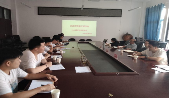 2022年6月20日下午,在资环学院会议室召开毕业生座谈会,资环学院党政领导、毕业班班主任、学生科老师、部分毕业生代表参加座谈会。党委书记王家顺、院长娄昭、副院长王恩文、副书记韦静分别在座谈会上讲话,引导毕业生畅所欲言。