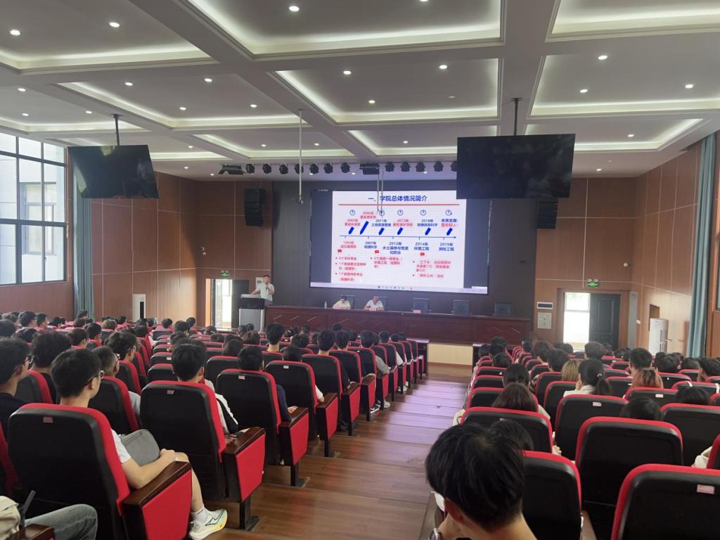 阅兵式结束后,王恩文副院长首先介绍了资环学院的基本情况,内容包含学院发展历程、专业概况、师资力量、实验室仪器设备、就业考研等方面。其次介绍资环学院丰富多彩的学生活动,如“资环之光”晚会、三下乡活动、环保协会等,鼓励新生积极参与和发扬特色活动。同时,还介绍了学院优秀毕业生案例,强调考研的重要性和可行性,鼓励同学努力在大学加强专业学习,积极主动参加大创、互联网+项目,努力从各个方面提升自己的综合素质。