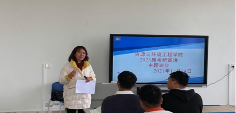 2021年11月24、25两日,资环学院副院长王恩文教授,学生科科长、助研专员宋艳老师分别为2019级五个班级召开“2023届考研动员宣讲主题宣讲会”。会上,王恩文副院长主要从走进考研、决胜研路两个方面鼓励学生开启考研梦,强调考研是一个比较艰难的过程,更是一场持久战,可以锻炼同学们的毅力和心态,希望同学们将之作为2023届高质量就业的目标之一。