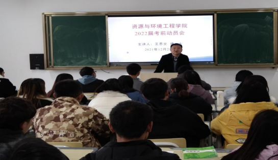 为促进2022届学生考研顺利,清晰考研方向,助力学生考研,2021年11月24日17:00点,资环学院在顺理楼4-53教室开展2022届毕业生考研前动员大会。资环学院副院长王恩文教授、校助研办负责人伍倩博士以及2022届部分考研学生代表参加,会议由资环学院助研专员、学生科科长宋艳老师主持。