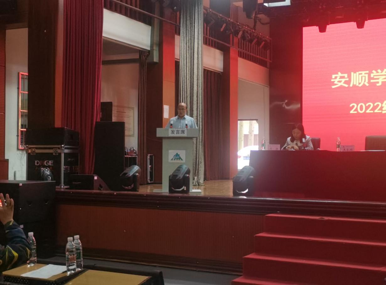 2022年9月1日下午一点,安顺学院资源与环境工程学院2022级新生见面会暨开学第一课在大礼堂召开。参加会议的人员有党委书记王家顺,院长娄昭,党委委员、副院长王恩文,党委专职副书记韦静,党委委员、教学科研与实践管理科科长谢成德以及资源与环境工程学院全体教师、2022级全体新生。此次会议由党委专职副书记韦静同志主持。